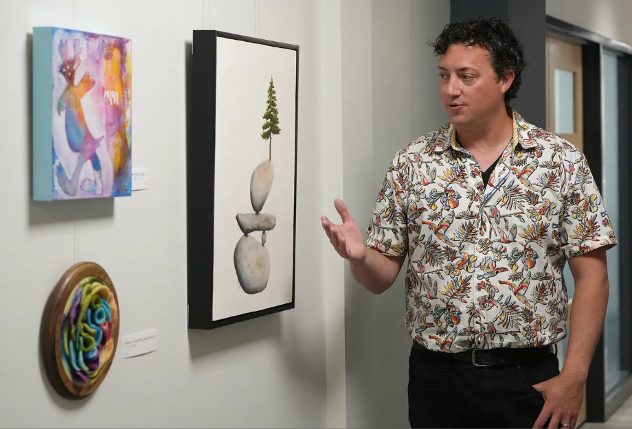 Stewart’s Care Center, a non-medical wellness center for those who have been impacted by a cancer diagnosis, curates two art exhibits in its hallways each year with the help of Mac and Allyse. Typically, the exhibits feature work from local artists.