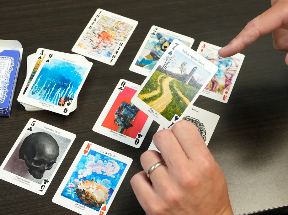 Schaffel said more 200 people submitted work. Each person who applied but didn’t make it into the collection was given $100. Each contributing artist made $1,400 after the the pre-sale closed for both the card deck and the book, and Schaffel expects each to make a total of $3,000 after more inventory sells.